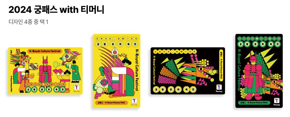 궁패스 실물카드는 아래 사진처럼 4가지 종류가 있습니다. 초반에는 자신이 원하는 카드 종류를 선택할 수 있겠지만, 실물카드인 만큼 일부 디자인의 재고가 금방 바닥날 수 있다는 부분 미리 예상해야 할 것 같습니다.
